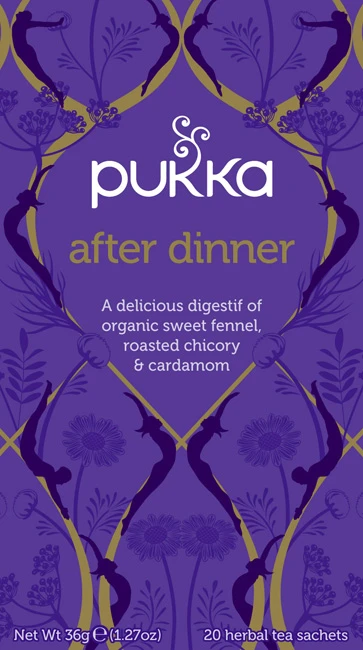 Ingredienser: Ristet cikorierod* (24%), anisfrø*, fenikkelfrø* (20%), lakridsrod*, kardemommefrø* (8%), appelsinskal*, ingefærrod*. (*økologisk dyrket)