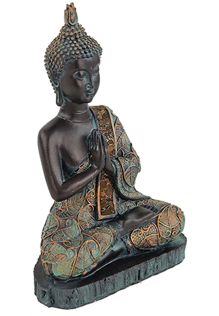 Thailandsk Buddha med tøj med mønster af bodhiblade.