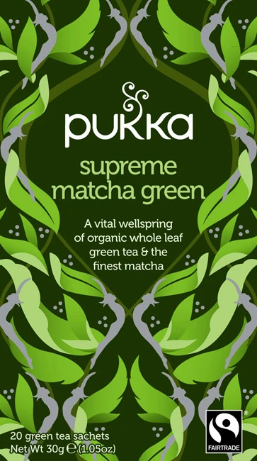 Pukka Supreme Matcha er en økologisk og Fairtrade helbladet grøn te med en fløjlsblød og fyldig smag. Antioxidant grøn te, der kombinerer Fairtrade Sencha, Oothu and Suoi Gang grøn te med fyldigt Matcha pulver.