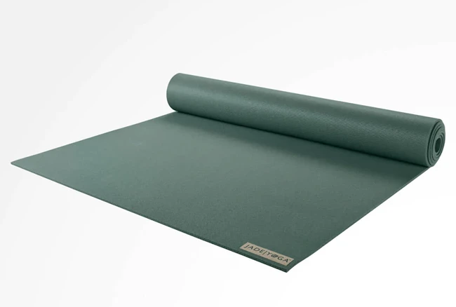 Jade Yogas mest populære yogamåtte har et godt greb og giver god stabilitet til stående stillinger samtidig med, at den er behagelig både at sidde og ligge på.