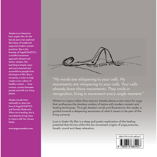 Written to inspire rather than instruct, LOVE IS UNDER MY SKIN, shares a new vision for yoga that bridges cultural gaps by synthesizing the timeless wisdom of the East with modern Western somatic and healing techniques, guiding the reader towards a profound awareness of what it means to be part of this living universe.