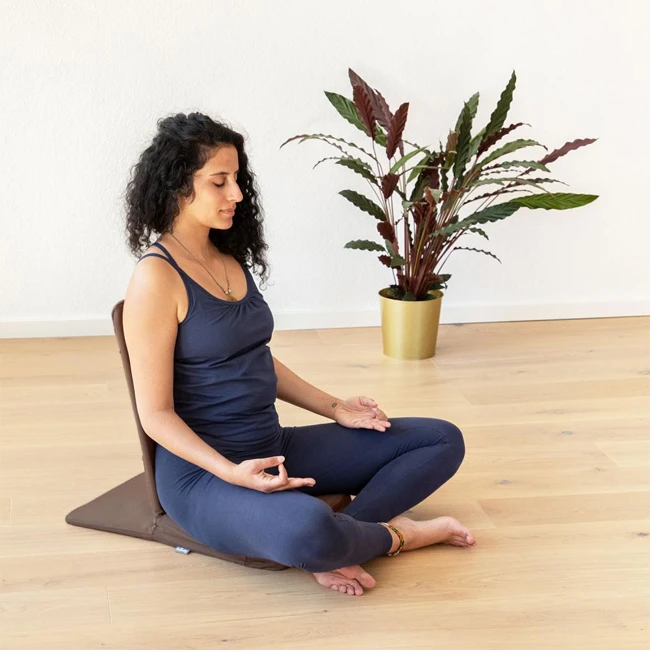 Mandir Backjack er en gulvstol til meditation med polstret ryglæn. Meditationsstolen kan hurtigt stilles op og har et komfortabelt, polstret ryglæn, der giver ekstra komfort ved siddende meditation. Især til lange siddesessioner kan et ryglæn give aflastning for rygsøjlen. Meditationsstillinger som krydsede ben sukhasana, siddhasana og halv-lotus kan holdes meget længere og mere behageligt. Gulvstolen er god til brug i hjemmet og til længere meditationsretreats eller seminarer.