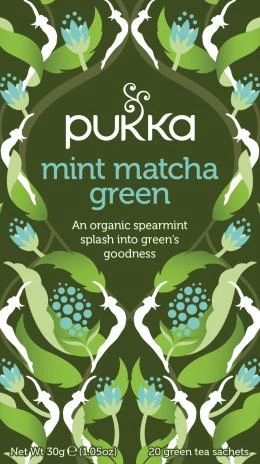 Pukka Mint Matcha Green er en økologisk helbladet grøn te tilsat matcha pulver samt en blanding af Egyptens givende grøn mynte, der tilfører hver eneste kop te en inspirerende oplevelse af friskhed.