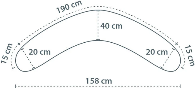 Multipuden måler 190 cm x 40 cm og er både længere og tykkere end en ammepude hvilket giver dig flere muligheder.
