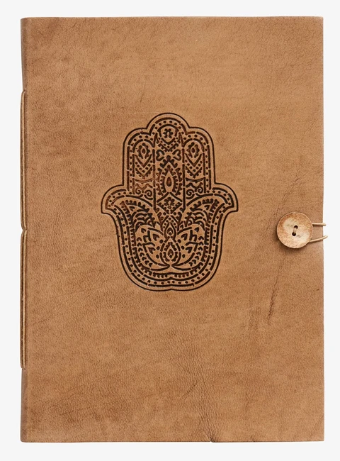 Eksklusiv notesbog fra Nordal i læder med HAMSA symbol – et symbol for beskyttelse.