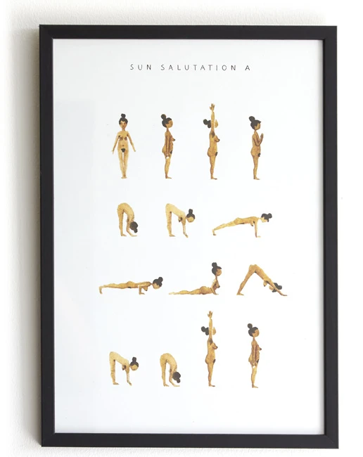 Plakaten er lavet af Marie Jørgensen / Yoga Prints, som gennem sine akvarelillustrationer forsøger at vise, at yoga er for alle mennesker uanset alder, vægt, hudfarve eller køn.