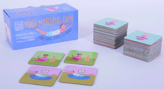 Yoga Huskespil med 18 yogastillinger og mulighed for at udføre en yogasekvens med alle spillere i slutningen af spillet.