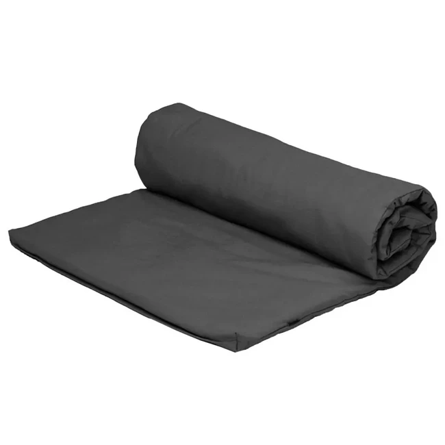 Yogamåtten har et aftageligt twillbetræk og er polstret med 2-lags bomuldsvat og quiltet som en futon. Yogamåtten er nem at rulle og kan fæstnes med de to vedhæftede stropper for nem transport.